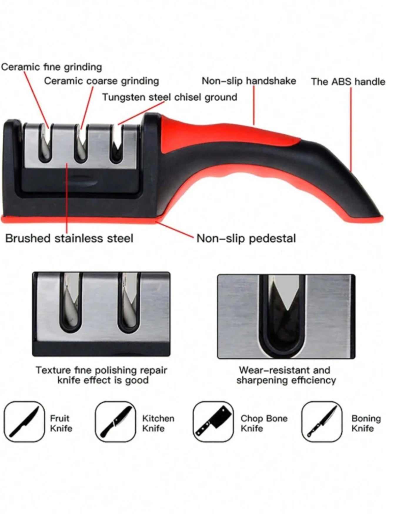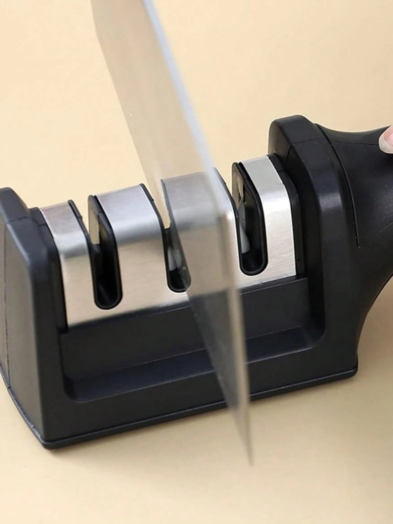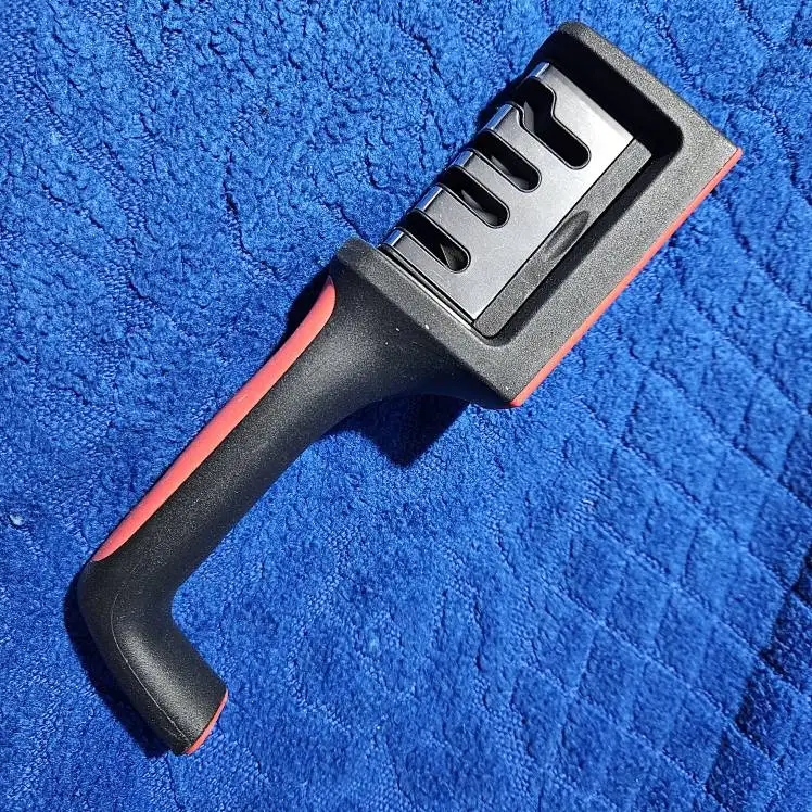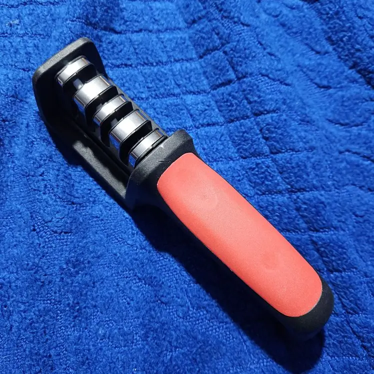 • Afilador multifuncional:Este afilador de cuchillos de cocina es una herramienta portátil multifuncional que sirve para tres propósitos.Es una adición versátil a tus utensilios de cocina.